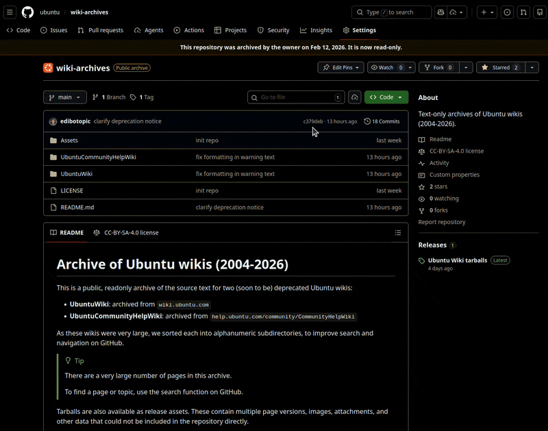 We have made a public, read-only archive of the two Ubuntu wikis, in preparation for their upcoming deprecation.
