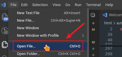 Select “Open File” (or Ctrl+O) to open the dialogue.