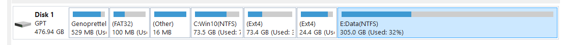 The partitions looks like this from Win10: