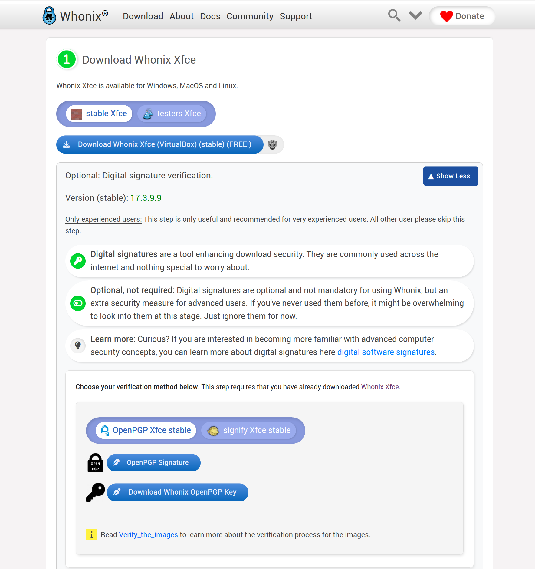 Edit: Make sure you check out her tutorial, at one point she says there is a published fingerprint on the veracrypt website that you have to compare to, but I can’t find a fingerprint on the whonix website. I’m confused.