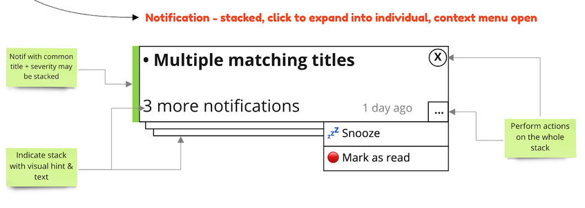 - Clicking on the notification stack expands the notifications into their separate items, sorted by recency