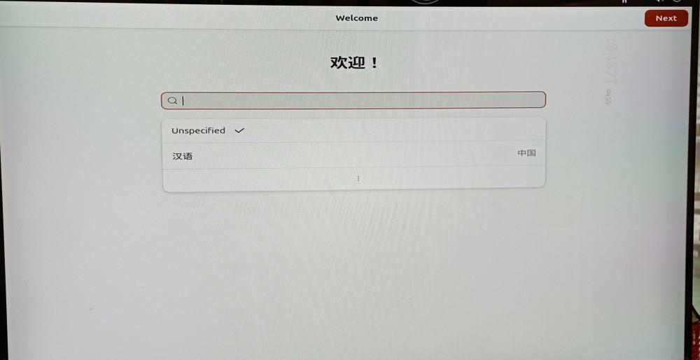 It is not easy to see but that Welcome screen has three panels. Under the panel with the Chinese characters is a third panel. A mouse hover will reveal the word “more.” Click on that panel and we get a long list of languages from which we can select the language that the installer will use. Then we click Next and move on to the next screen.