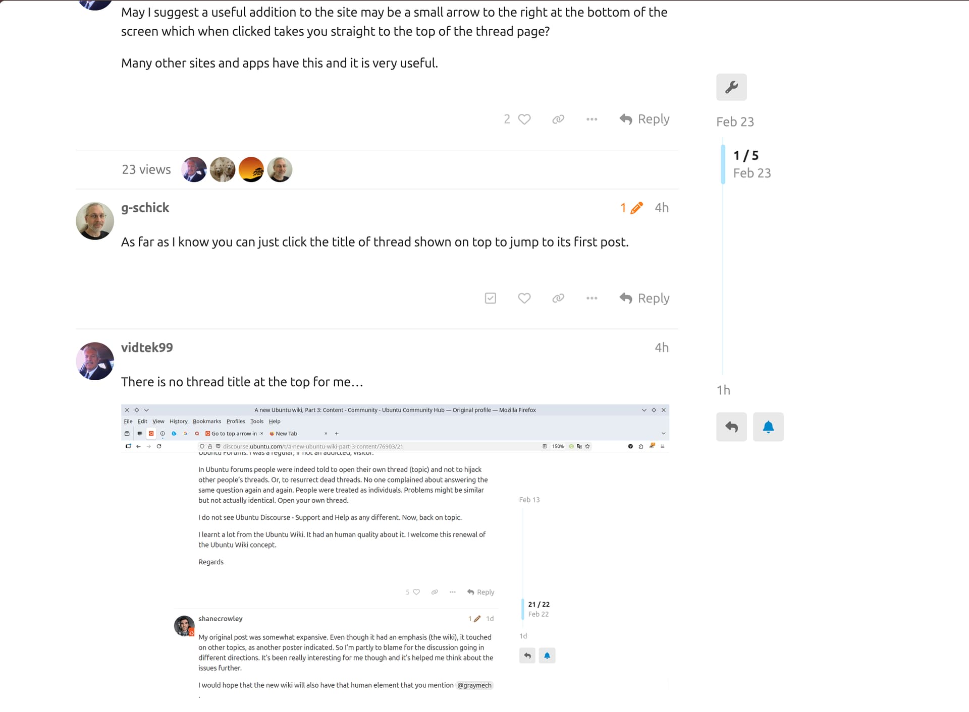 A number of pages use the top as an Agenda/current.status, then posts subsequent to it record data/comments etc, thus hitting HOME lets you view current.status detail, and END lets you jump to the latest post on the thread, or where you’ll post a your own etc…