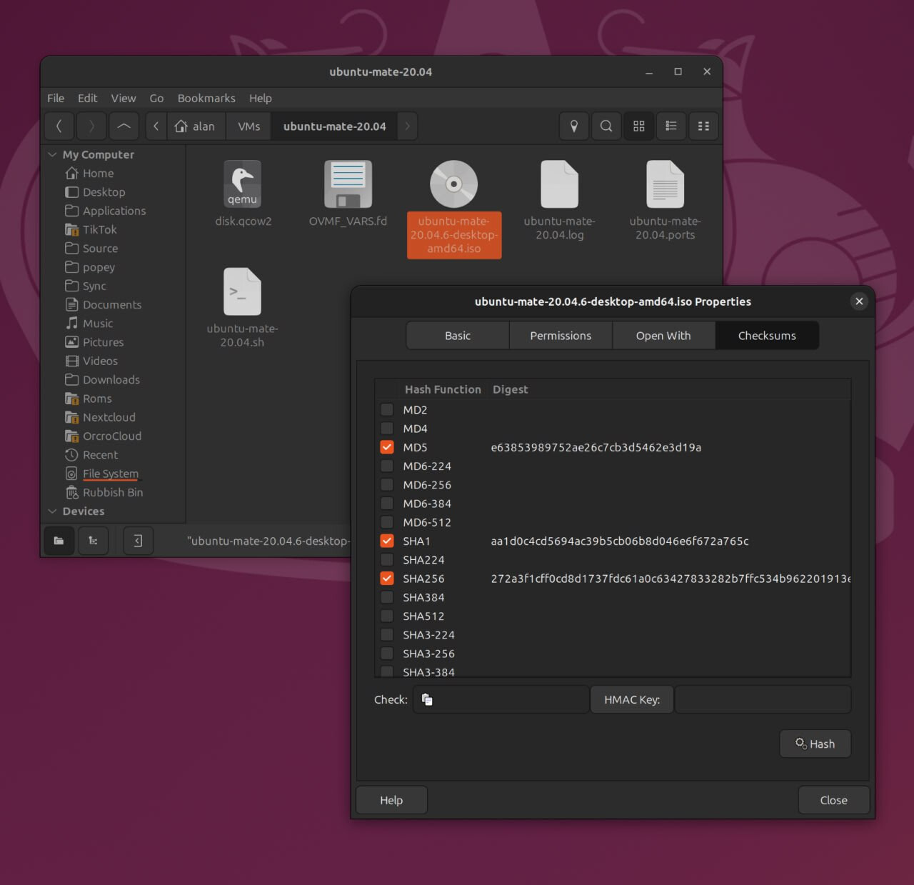 I have a problem in that I can only find SHA256 hashes for a file. That’s the default. I right-click a file > Calculate Hashes, and it shows me SHA256.