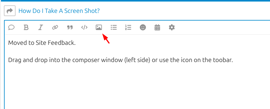To upload it here on Discourse, just drag the image into the reply box, or click the upload icon (the little arrow) and select your screenshot.