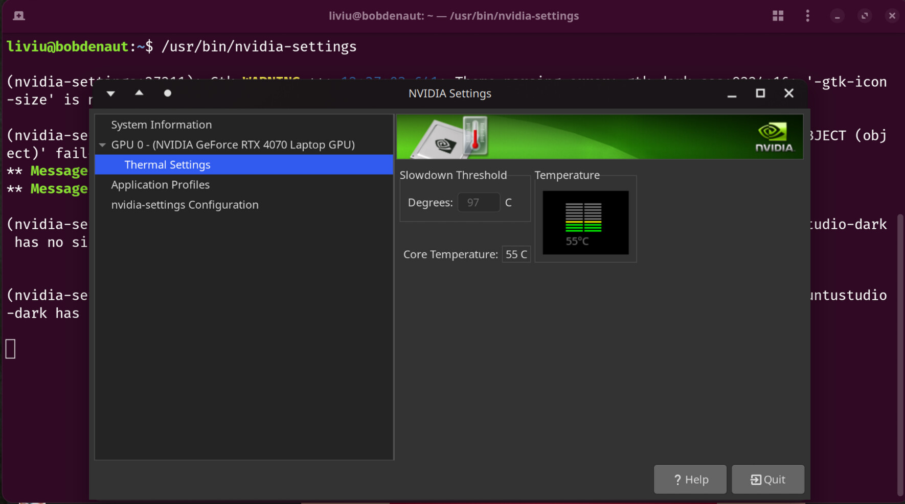 Please note that the changes of the fan speed will be reset on a reboot, so you’re going have to repeat a step 8 if you want a full fan speed. Also aware that if you update Ubuntu’s NVIDIA driver, make sure you start over this workarounds or else fan speed may be not working. But I really wish there’s a way for laptop users and palmtop users to have a fan speed changes on Linux with nvidia-settings.