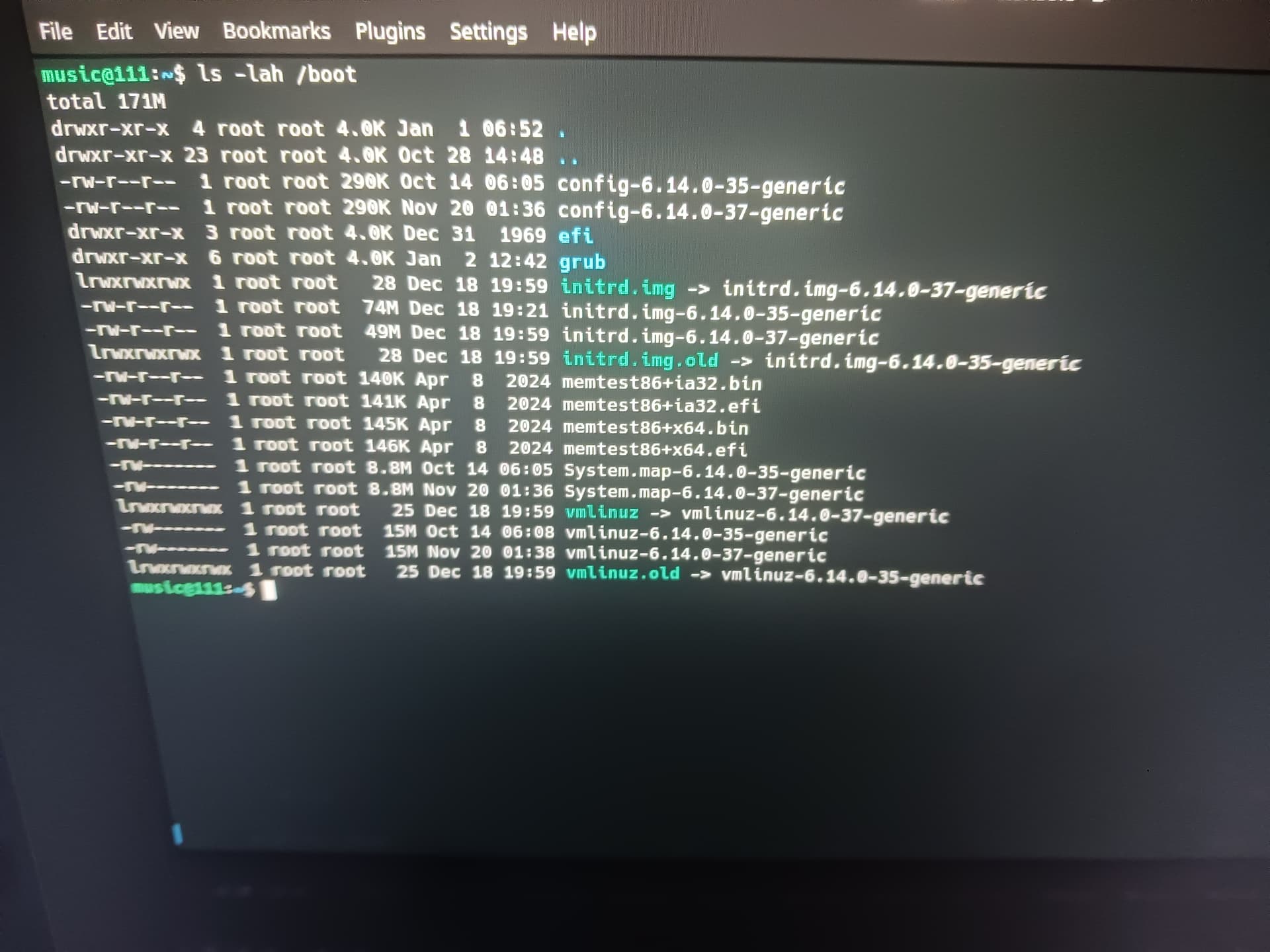 So, when your installed system (not a Live/Installer system) is working, please show us the complete output of the following commands. Simply copy/paste the entire output from the terminal into your response. Please try to retain formatting for readibility: ls -lah /boot sudo apt update