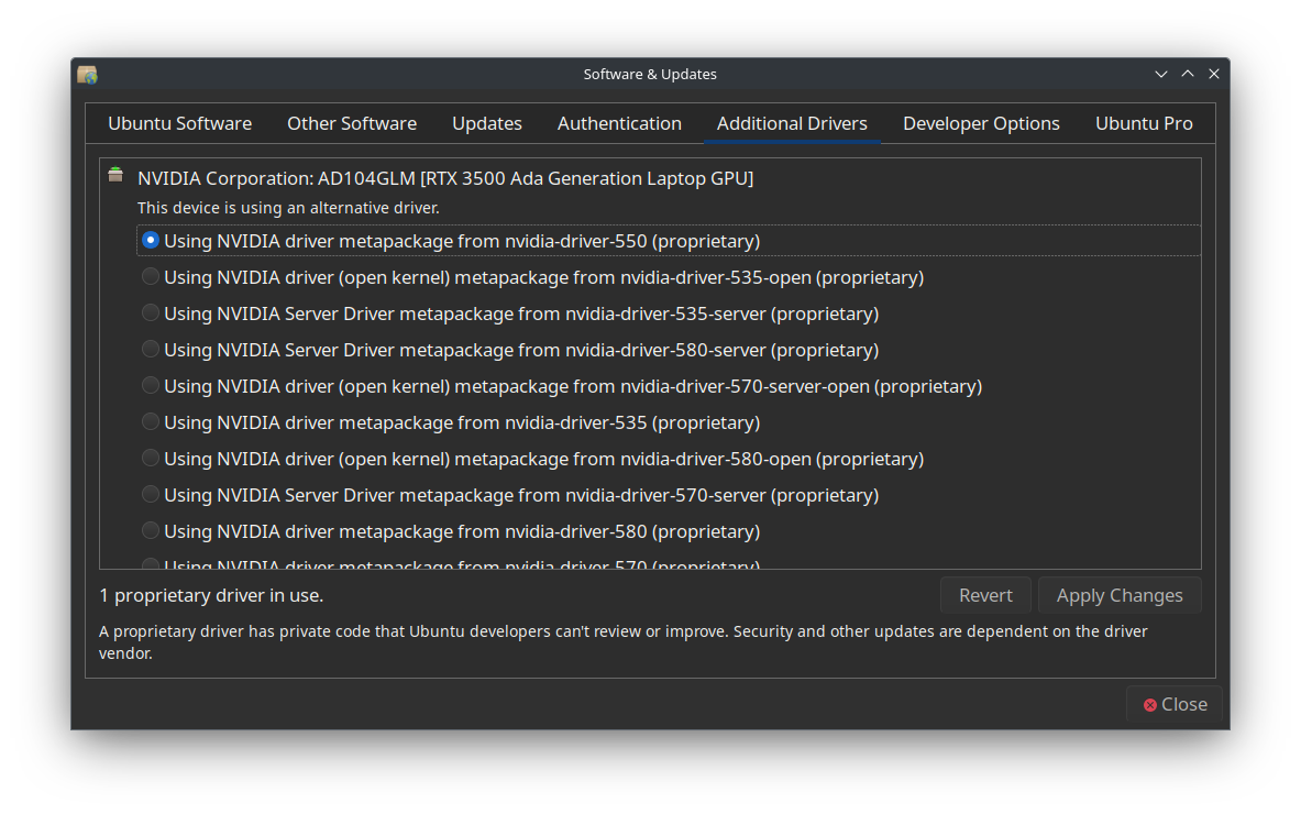 $ sudo apt-get install --fix-missing nvidia-driver-550