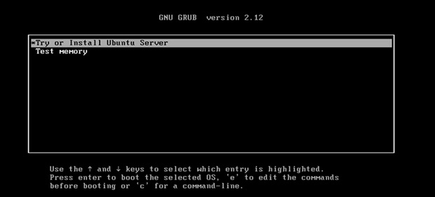 Following processes are same for both bare metal or hypervisor OS installation. Select Install Ubuntu and let the system load the Ubuntu installation screen.