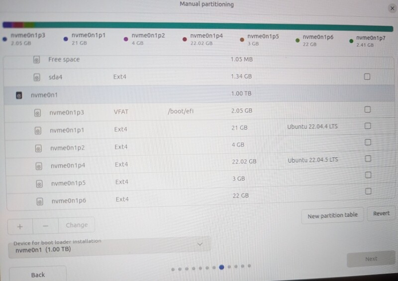 4 After selecting partitions on nvme0n1 for /boot, / and /home,