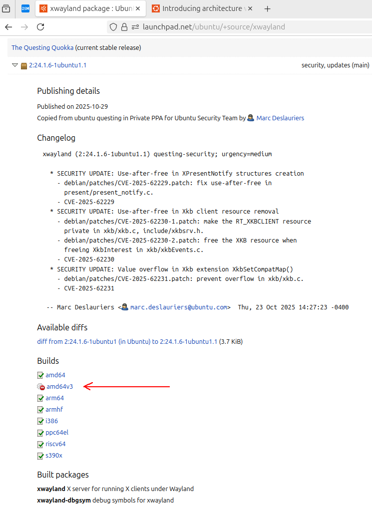 Indeed, Itâs amd64v3 for 26.04 Resolute. I donât know why it wasnât converted for current release yet.