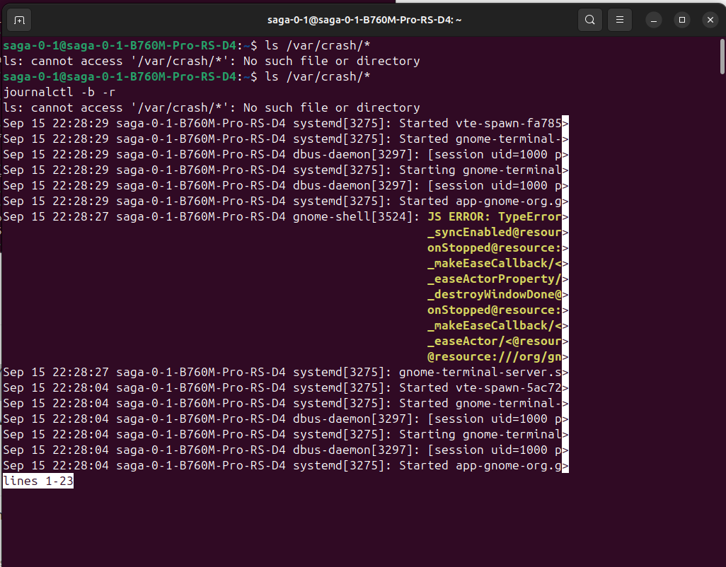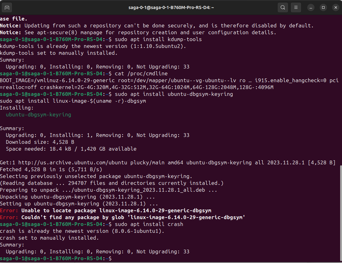 Hate to bump again. The threads only good for about a week more and I don’t seem to be getting a reply. I updated the Kernel again. Seems the update was minor, but as always it still won’t boot. I can’t only currently boot with 6.14.0-29-generic. I tried ls /var/crash as eeickmeyer requested. I don’t know if or not he said “ls /var/crash/” alone, but it says “kdump_lock” when I do. When I ran the shell script before updating the kernel I got a message “Failed to execute child process “dbus-launch” (No such file or directory)” Once again sorry for bumping. I only have a finite amount of time with this topic.