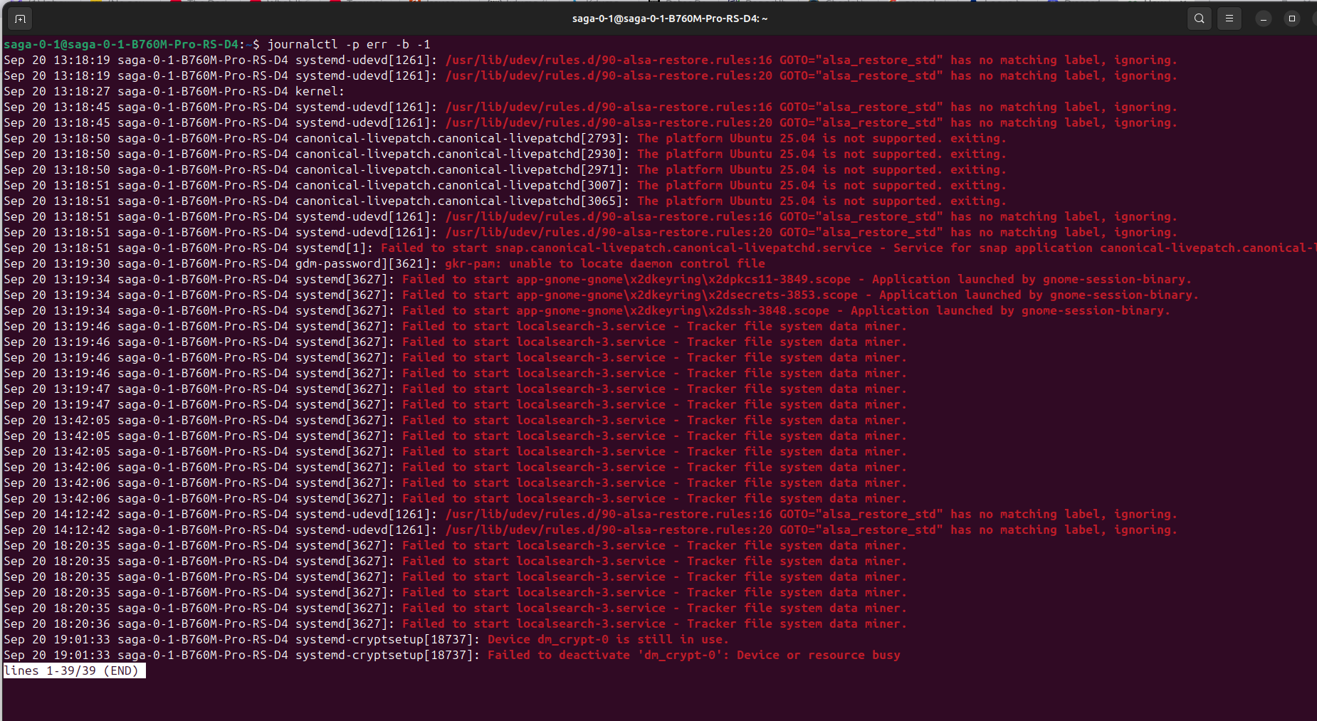 The log “Failed to start localsearch-3.service - Tracker file system data miner” seems to be the most suspect a the moment however I tried a couple commands recommended via search as followed: