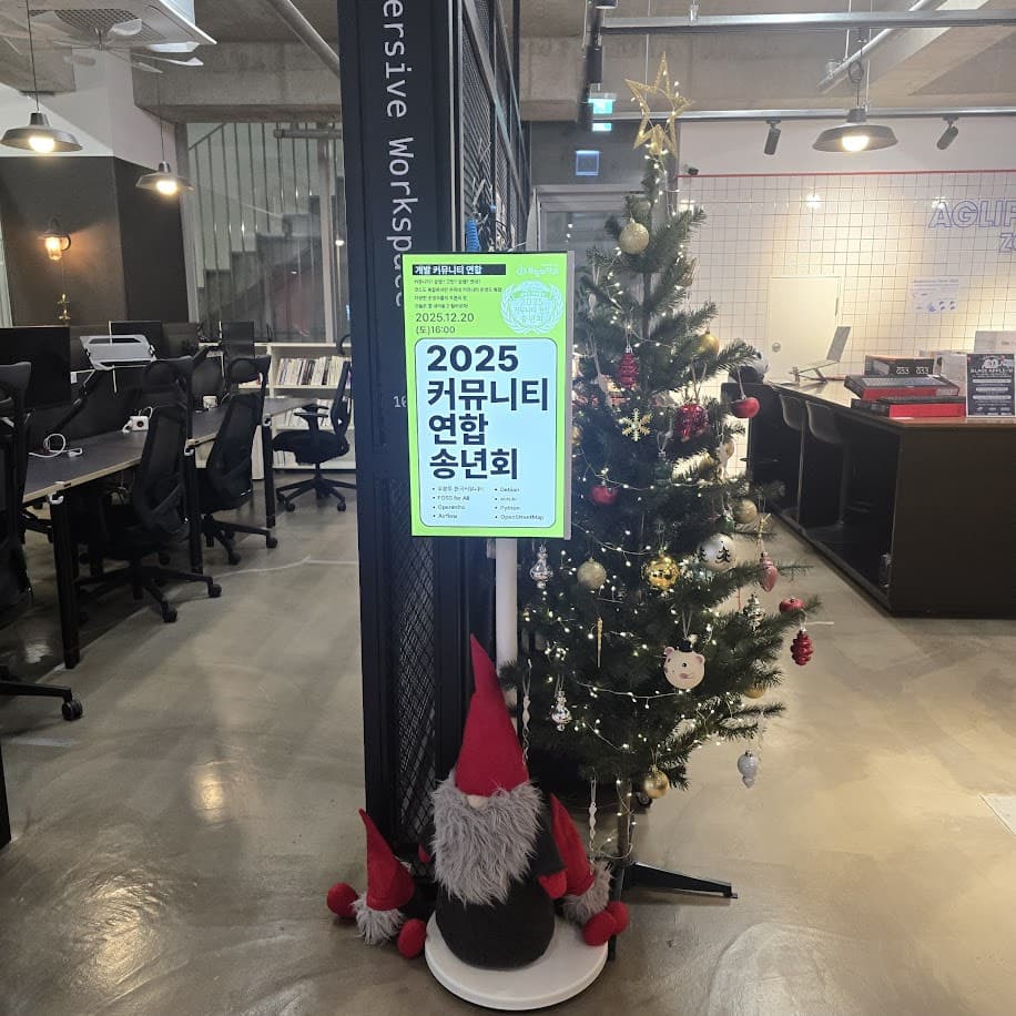 Last saturday, we had a joint year-end party with other FOSS community organizers in Korea including Ubuntu Korea, Debian Korea, Python Korea, vim.kr, OpenStreetMap, FOSS for All, OpenInfra and more.