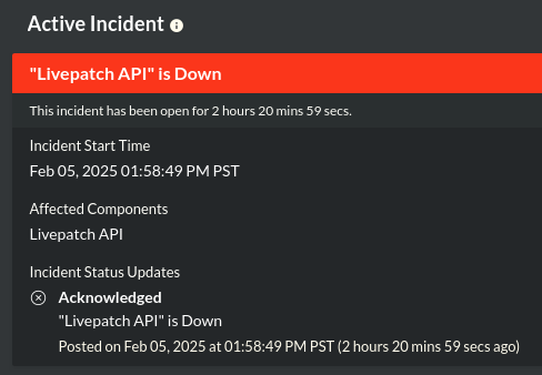 @rebroad1@couroderato Livepatch server is back up and your clients should report everything is fine. However, if there are still issues you can try disabling and enabling Livepatch through the Ubuntu Pro client: