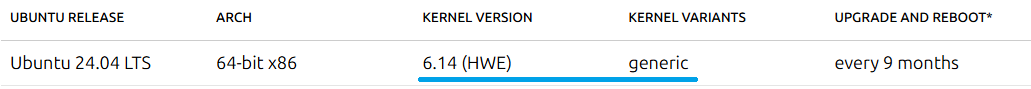On the kernel lifecycle page, 6.14 was released in August 2025 but doesn’t have Livepatch support, while 6.11 is not listed in the lifecycle but is listed in the Livepatch support.