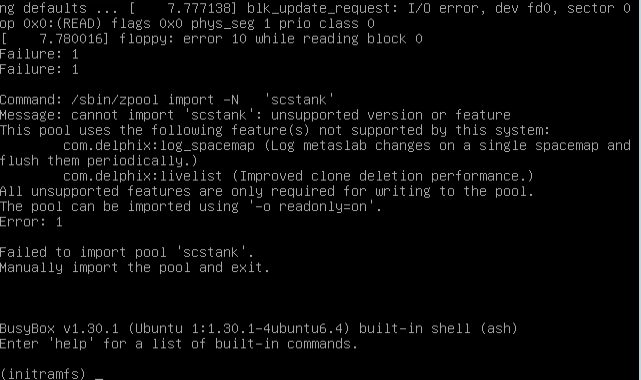 @yguerin I’ve never tried with a non-Ubuntu provided ZFS kernel module but the import error you get make it sound as if the pool was created with a newer ZFS version than the one you try to import with.