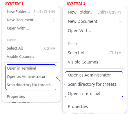 The case is that I have several systems with the same configuration in Ubuntu 25.04 (plucky). But I got something inconsistent between systems regarding Nautilus right click contextual menu. I have installed these three nautilus extensions: