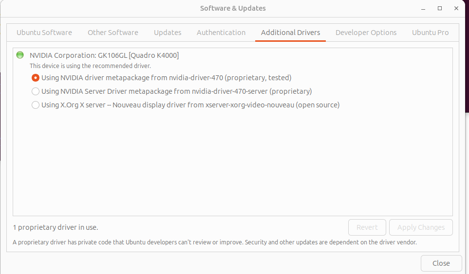 identified that I needed 470, and I installed it with sudo apt install nvidia-driver-470
