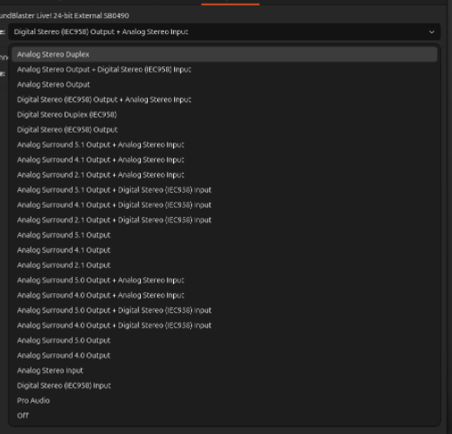 These are my options with said “SoundBlaster Live! 24bit”