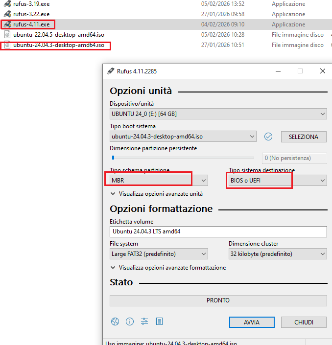 Then, from the boot menu, I booted from the USB drive where I had my Ubuntu image made with Rufus (version 4.11 running on a Windows 10 PC).