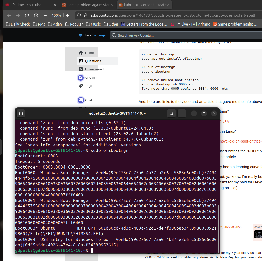 The first link in my post above was to the 2nd fix attempt. After looking at yancek’s post again, I found that guy at the end talking about those 'forbidden signature keys in Key Management in secure boot mode. I don’t have secure enabled now, but the link to key and forbidden are there.