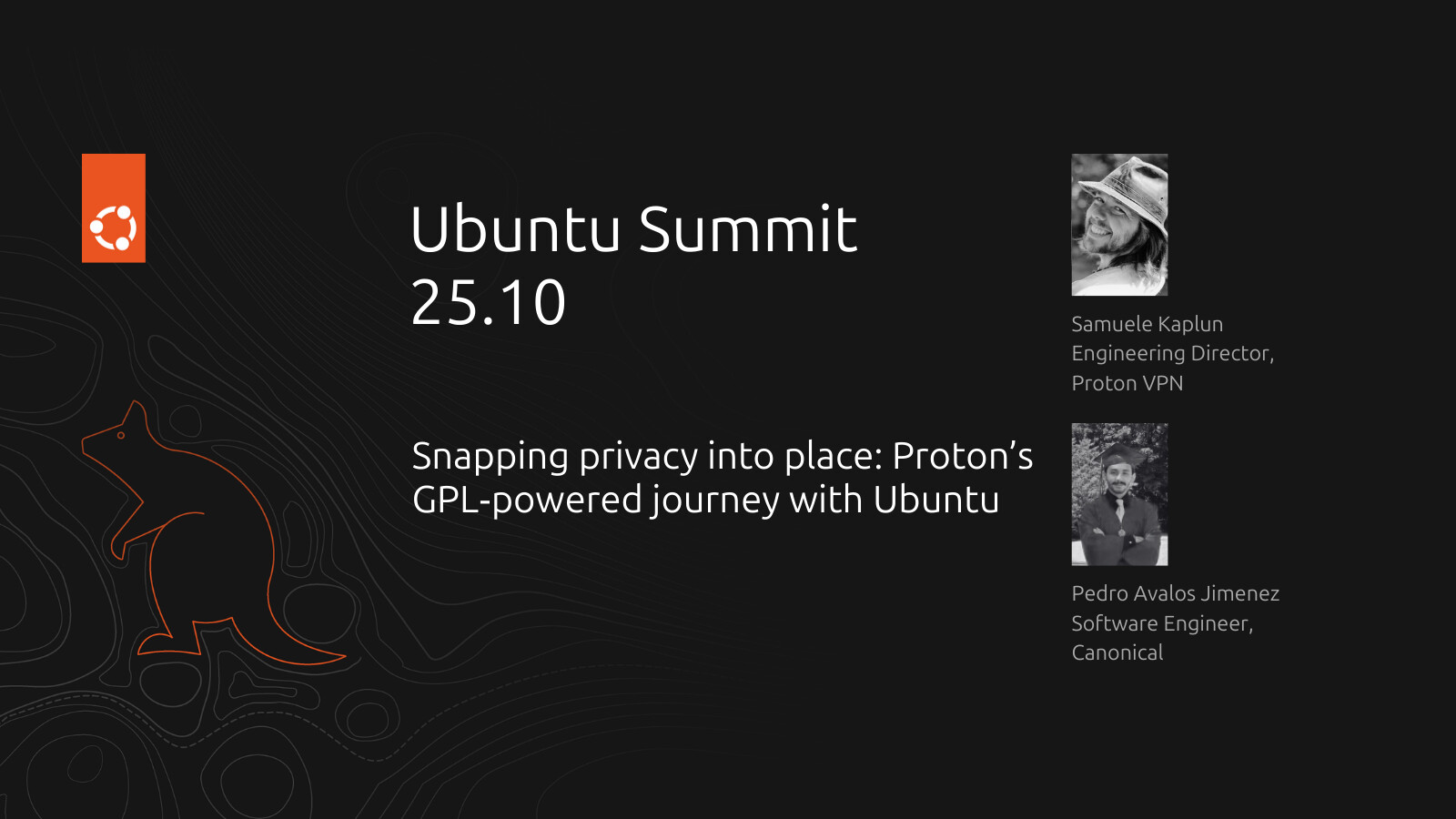 Finally, I’ll hand the mic to Pedro (Canonical) for a candid look at porting Proton Mail, Proton Pass, and the Bridge to Snap, the lessons learned from packaging Proton VPN, and the road ahead.