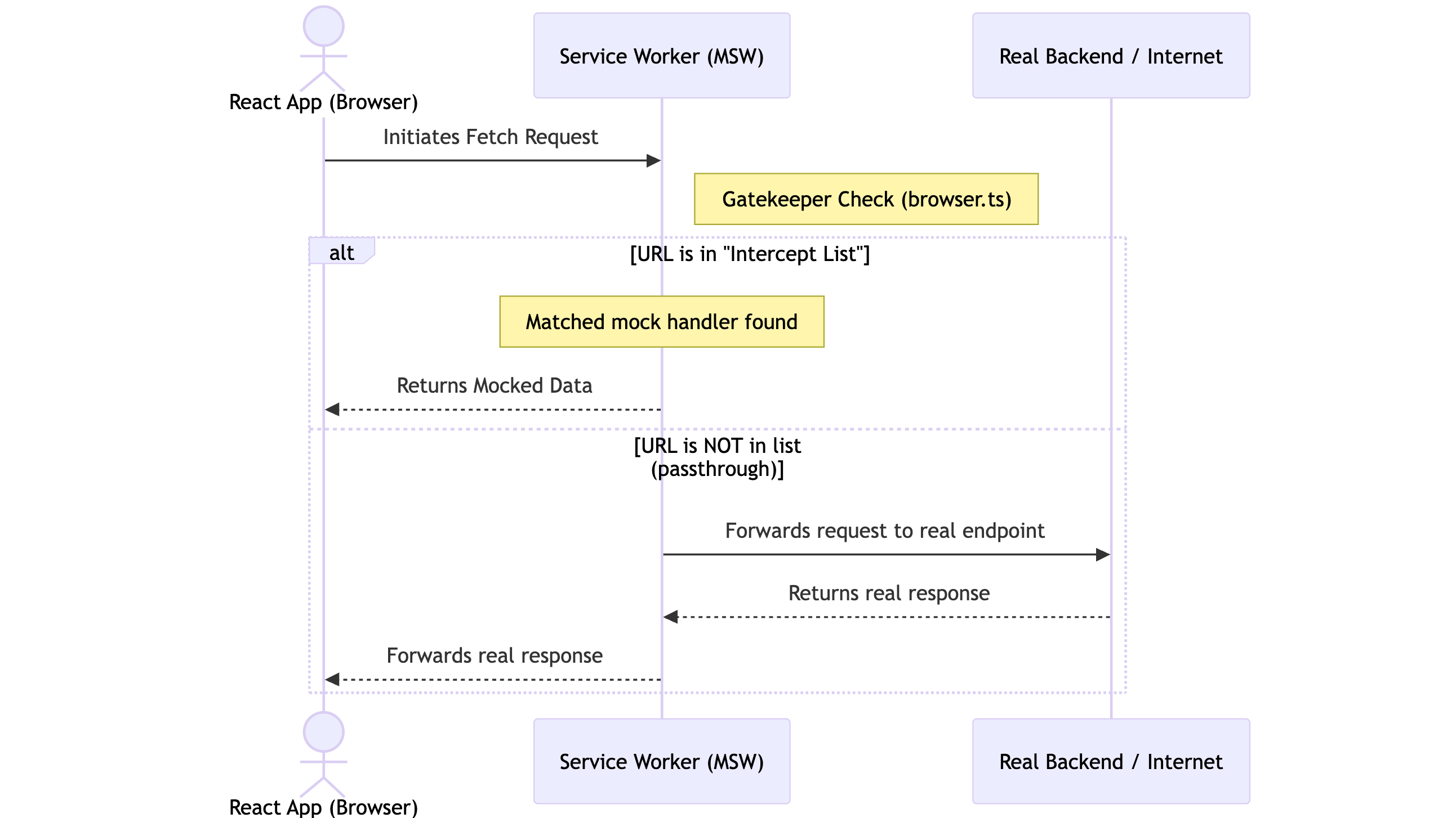 We created a “Middleware” handler that sits at the top of our handler list. It acts as a gatekeeper, deciding which requests should be mocked and which should go to the real internet.