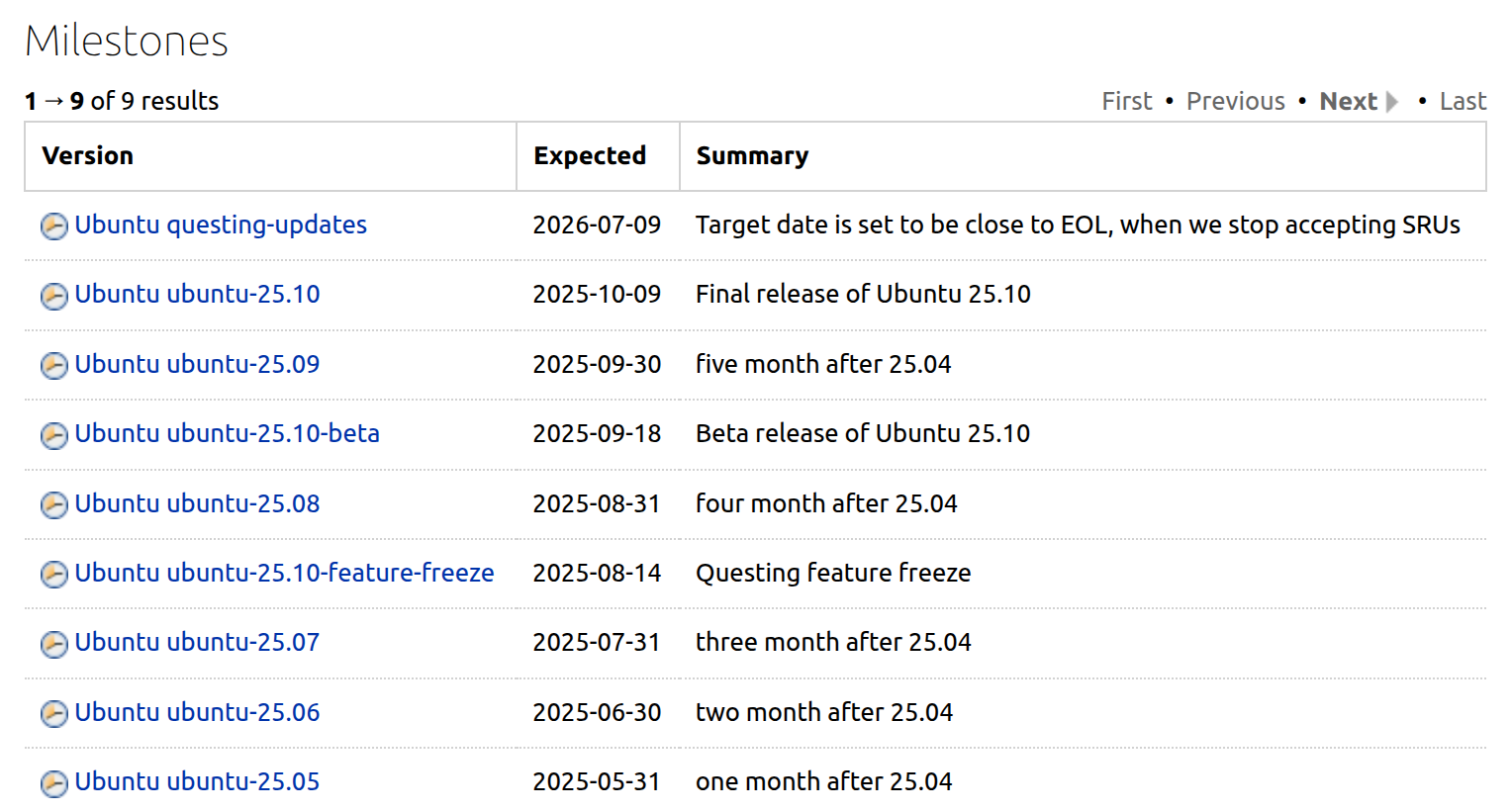 To aid the Canonical team in their understanding of the existing processes, and the immovable requirements that sit beneath it, weâre introducing monthly snapshot releases for Ubuntu. These will not be fully-fledged releases of Ubuntu, but rather curated, testable milestones from our development stream. For the 25.10 (Questing Quokka) cycle, you can expect the following release schedule (at the time of writing, subject to change):