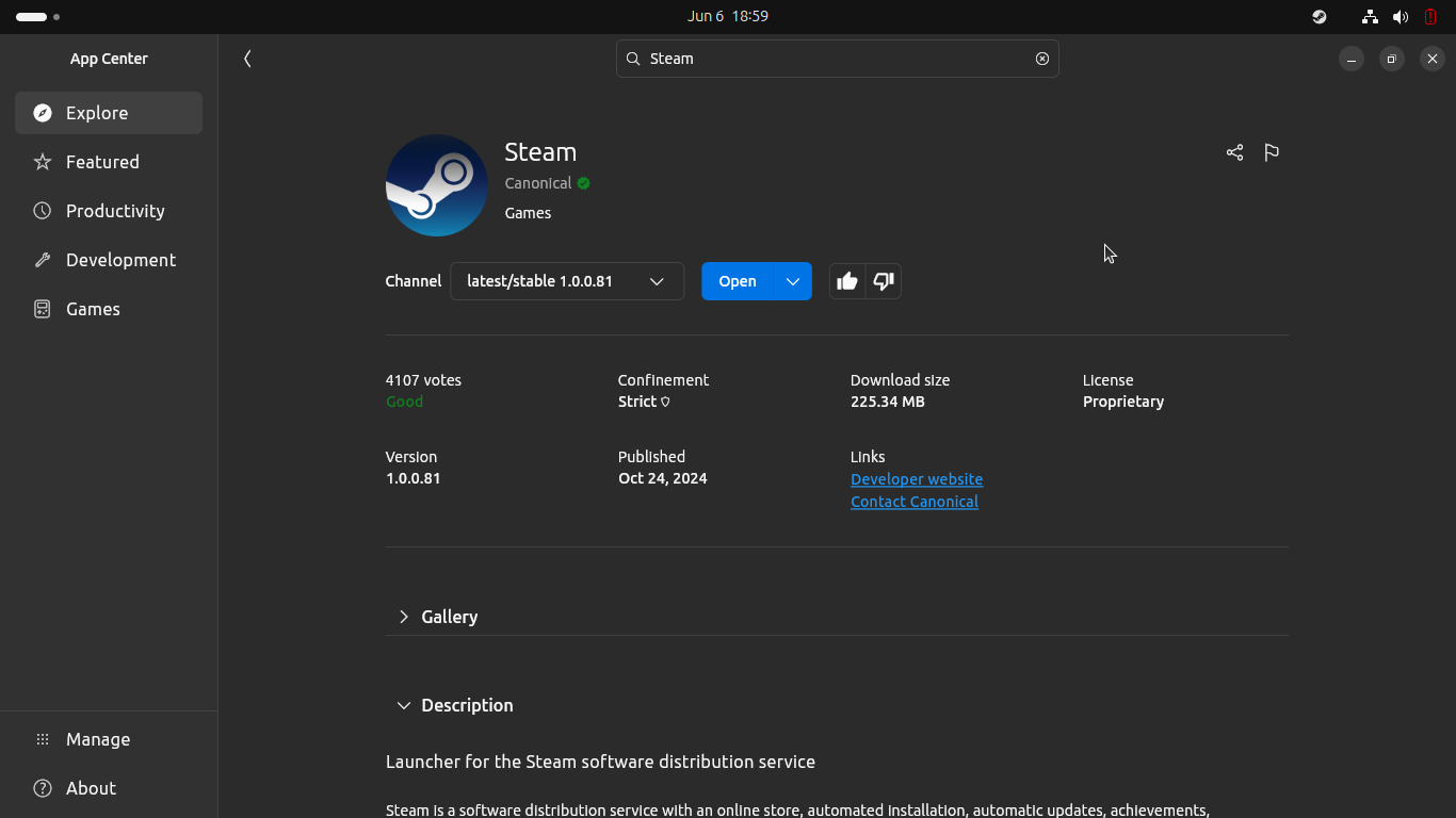 Secara default kita dapat bermain game Linux via Steam maupun launcher pihak ketiga lainnya seperti Heroic Launcher sebagai alternative “Epic Store” dan “GOG”. Ubuntu telah menyediakan “core system” untuk bermain game, kita dapat langsung menggunakan Steam dengan cara unduh dan install dari Ubuntu App Center.