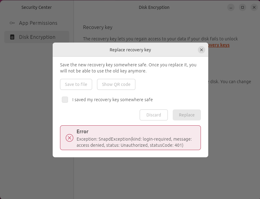 When I’m trying to "Replace the recovery key in the “Desktop Security Center”, it doesn’t open the authentication window, and it can’t get access to the necessary functionality.