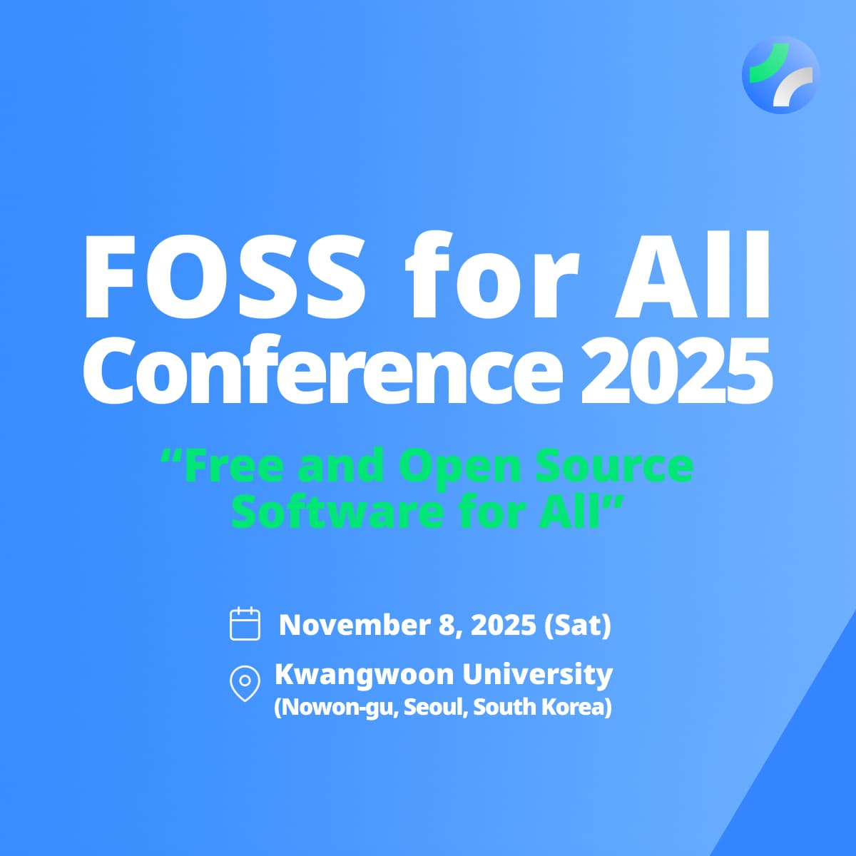 FOSS for All Conference is an community driven free and open source conference that aims to connect users, contributors as well as promoters across various open source in general in Korea and abroad.