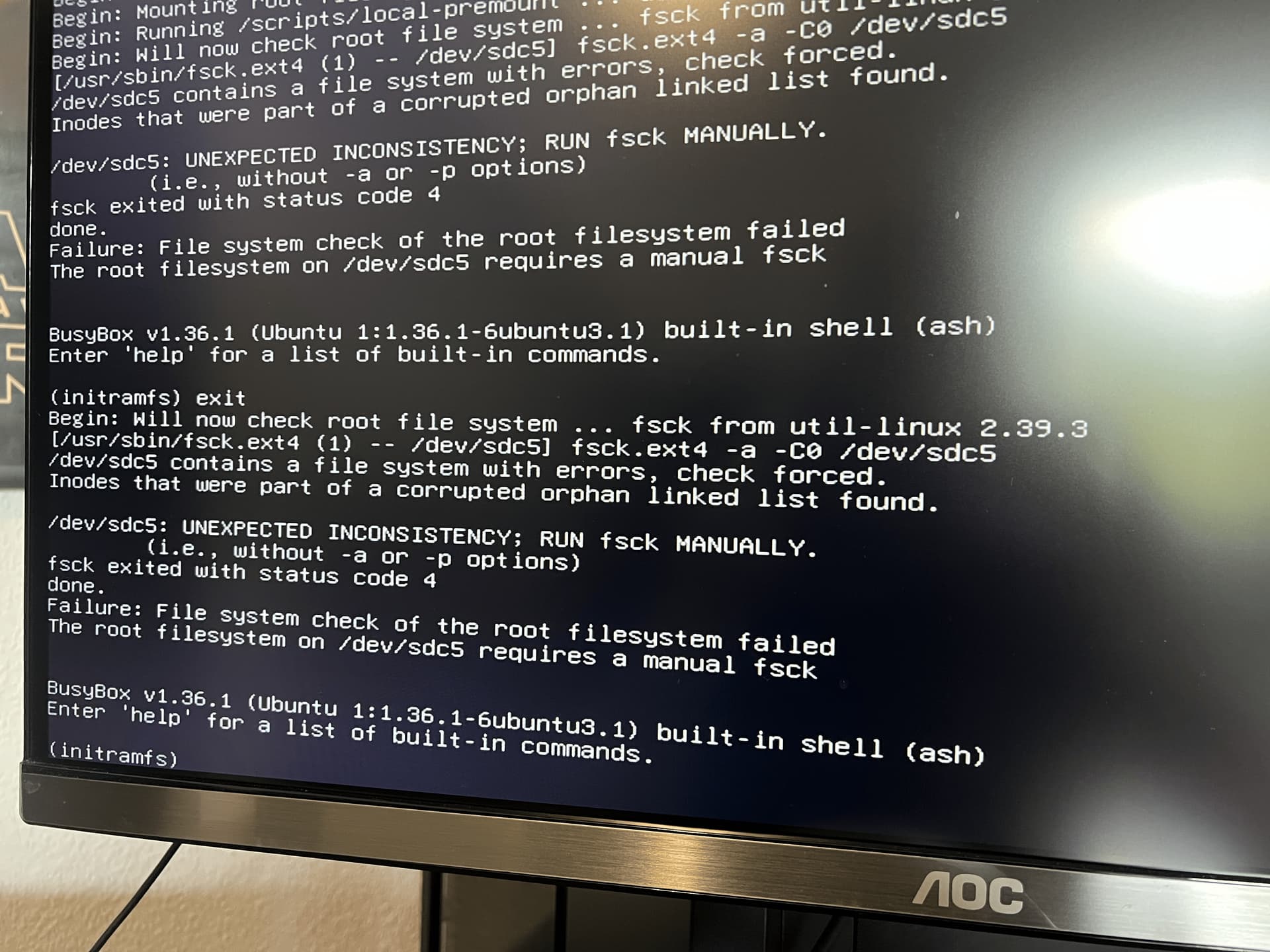 it gave me some console errors (which I sadly were not able to screenshot) and made Ubuntu crash. I was not able to click anything, each window started to disappear and I was no longer able to run any application, even the Terminal was affected. After that I am stuck in Ubuntus Busybox and I have no plan if I can recover the current Ubuntu installation and what exactly to do. I am not such a in-depth Linux users and I am kinda lost here.