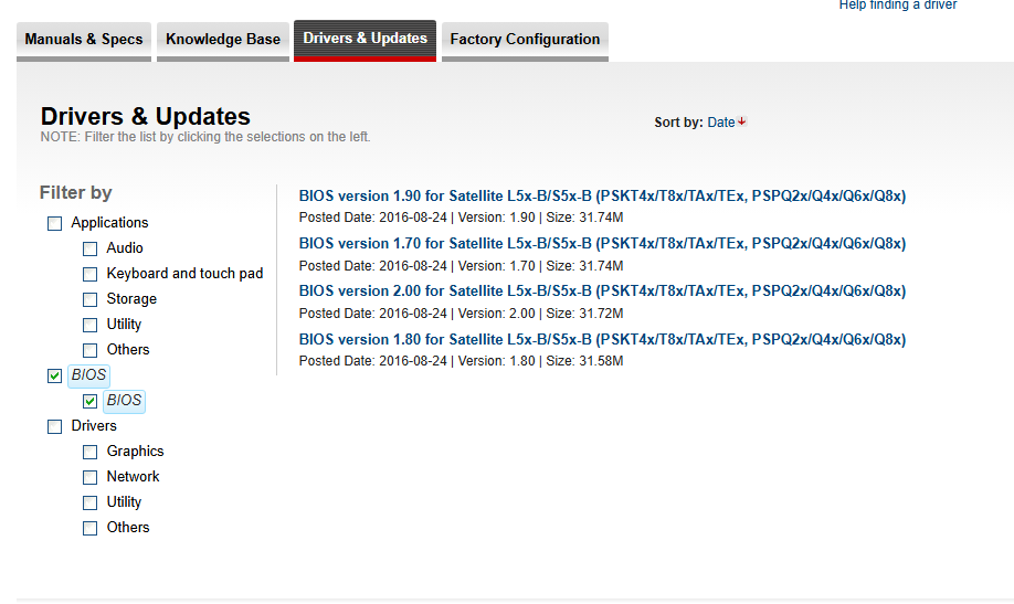 So I guess what I am wondering is whether an official BIOS update for SATELLITE L50-B is a sure match for a SATELLITE L50-B-1DZ, without having received an exact match for the product serial number?