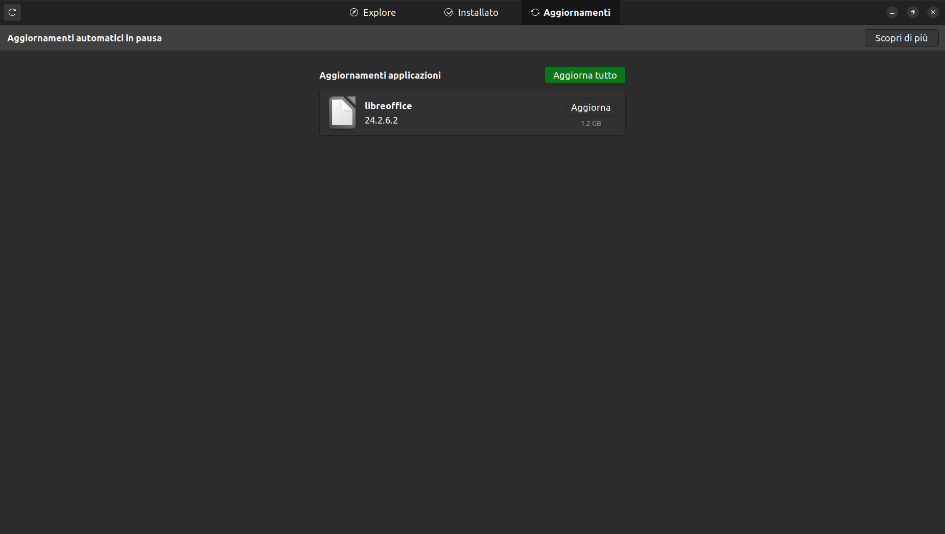 In the update page, the store, as you can see in the screenshot, shows the size of the app, not the size of the update. (For Libreoffice the update size was less than 200 Mb). In a way this misleads the (new) user.