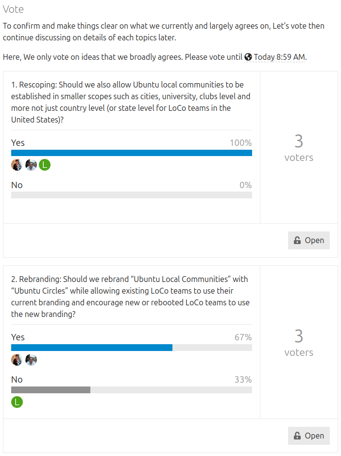 2. Rebranding: Should we rebrand “Ubuntu Local Communities” with “Ubuntu Circles” while allowing existing LoCo teams to use their current branding and encourage new or rebooted LoCo teams to use the new branding?