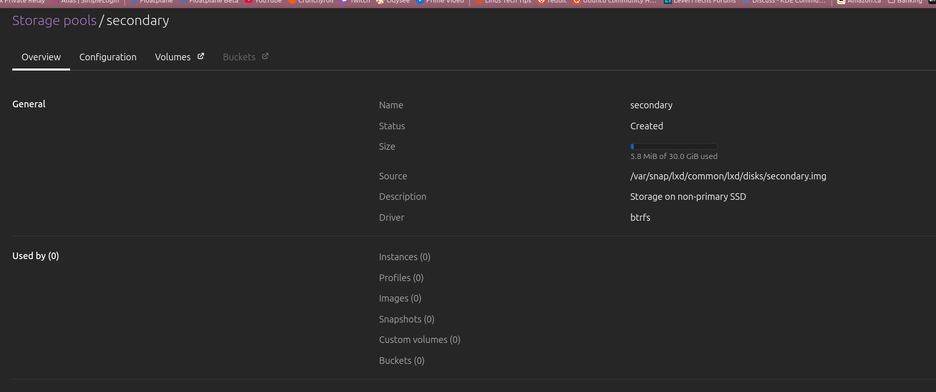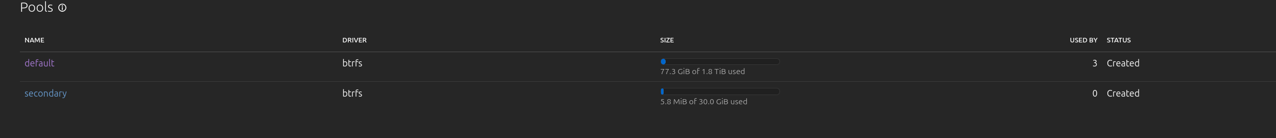 lxc storage create secondary btrfs source=/mnt/lxd-data